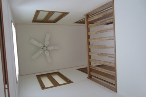 ファンのある吹き抜け 家族に楽しい2階オープンスペース