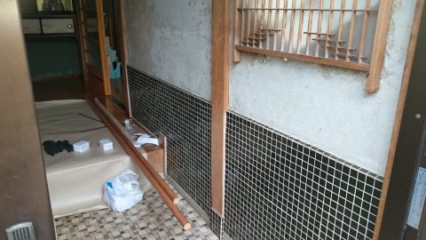 〇玄関・トイレ・脱衣室に手摺を取付けました。 〇廊下の床・玄関の壁を張替えました。